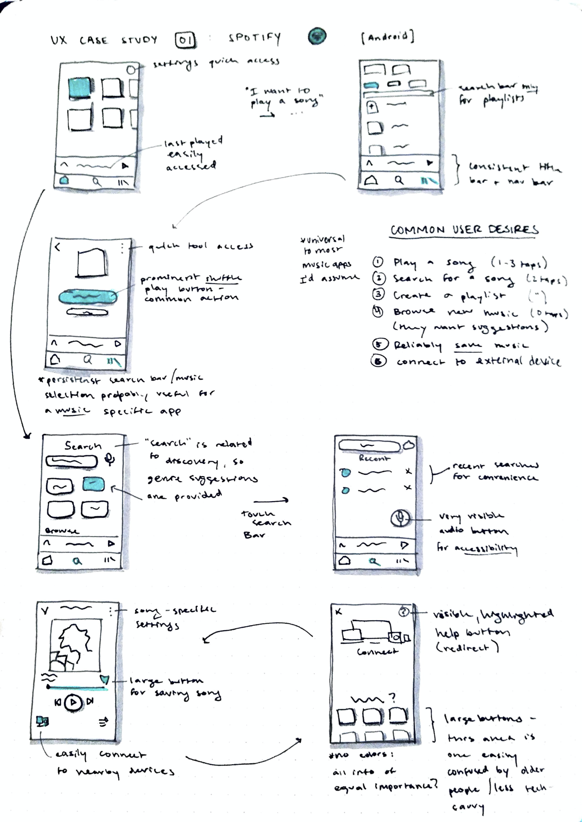 To practice my wireframing skills, I occasionally sketch out small-scale analyses of whichever apps or websites grab my attention. Below are a small selection of these wireframes.